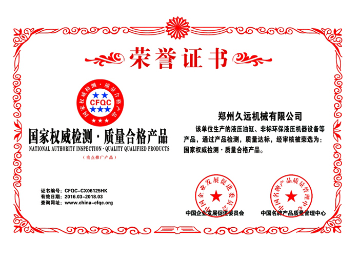 質量合格榮譽證書