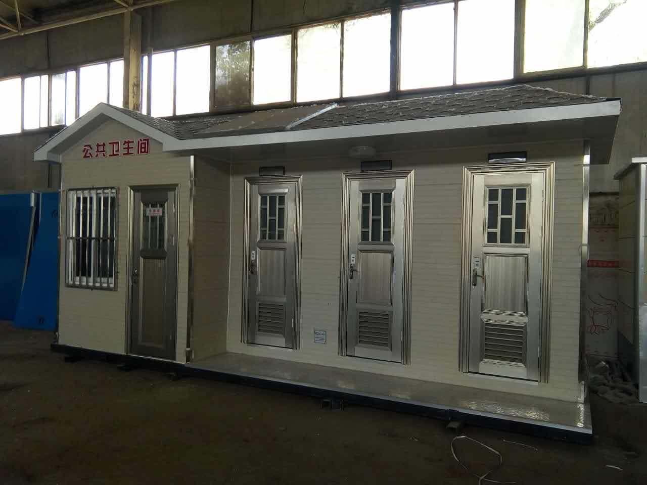 移動(dòng)廁所簡(jiǎn)介及制作方法:1、房體結(jié)構(gòu): 采用輕鋼龍骨結(jié)構(gòu),鋼材全部使用標(biāo)準(zhǔn)鍍鋅鋼材。根據(jù)房體的大小特選用國(guó)標(biāo)方管(50-100)焊接而成。鍍鋅管厚度為2.8mm,方管經(jīng)過(guò)除銹后進(jìn)行鍍鋅、防腐處理,這樣就會(huì)延長(zhǎng)廁所使用壽命.2、墻體: 墻板采用金屬雕花板,金屬雕花板是保溫、隔熱、環(huán)保、阻燃、防雨、防凍、隔音、抗震等...