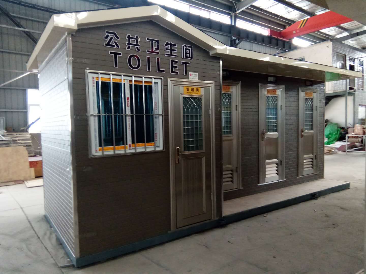 移動廁所簡介及制作方法:1、房體結構: 采用輕鋼龍骨結構,鋼材全部使用標準鍍鋅鋼材。根據房體的大小特選用國標方管(50-100)焊接而成。鍍鋅管厚度為2.8mm,方管經過除銹后進行鍍鋅、防腐處理,這樣就會延長廁所使用壽命.2、墻體: 墻板采用金屬雕花板,金屬雕花板是保溫、隔熱、環保、阻燃、防雨、防凍、隔音、抗震等...